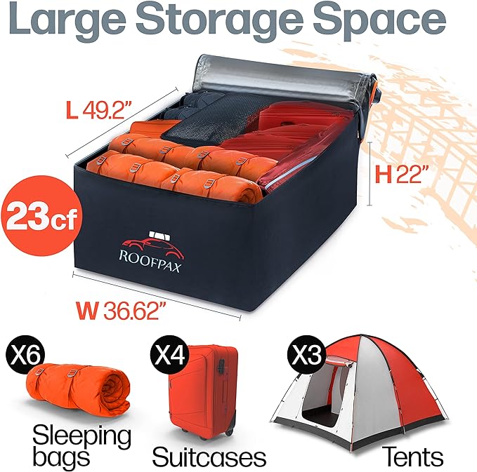 RoofPax 23 cft. Extra Waterproof Rooftop Cargo Carrier Bag, Double Weatherproof Zippers,10 Heavy-Duty Tie-Down Straps fit Cars with/Without a Rack or Side Rails, Safety Hooks Included