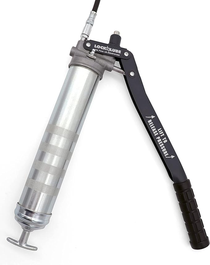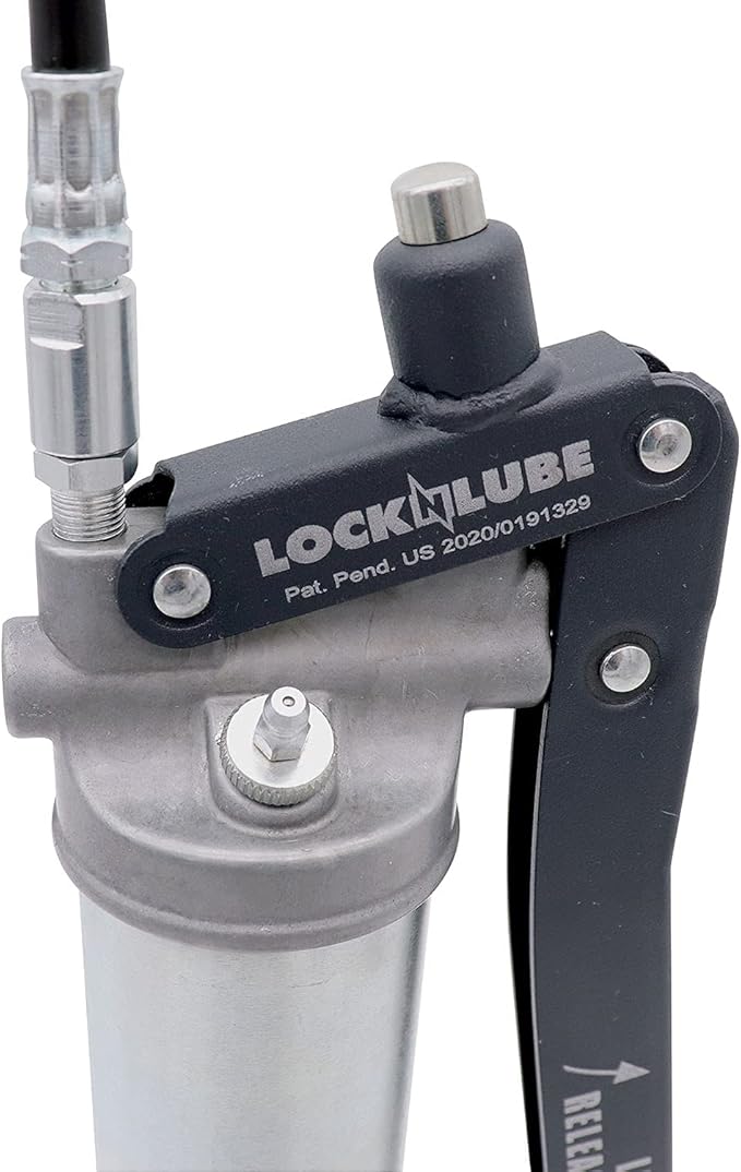 LockNLube Professional Series Lever Grease Gun. Includes Our Patented Grease Coupler (Locks on, Stays on, Won't Leak!) Plus a 20" Hose and in-line Hose Swivel.