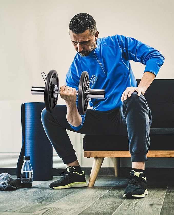 - Complete Olympic Dumbbell Bar Set: Includes 2 durable 16" Olympic dumbbell bars (25mm grip diameter) and 2 secure spring collars. Each bar weighs 8.3 LB unloaded; spring collars add minimal weight for true loaded performance.