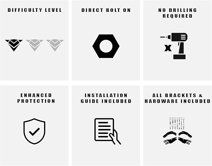 - [ COLOR & COMPONENTS ] - Matte Black In Color ; Three-Stage Finishing For Superior Corrosion Resistancerosion Protection; Each Kit Contains 1x BR1 Series Bull Bar, Vehicle Specific Mounting Brackets, & Required Installation Hardware With Easy To Follow Installation Guide That Requires A Basic Mechanic Tool Set