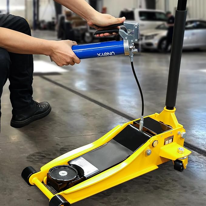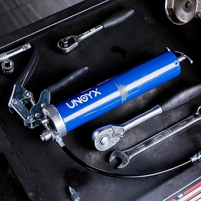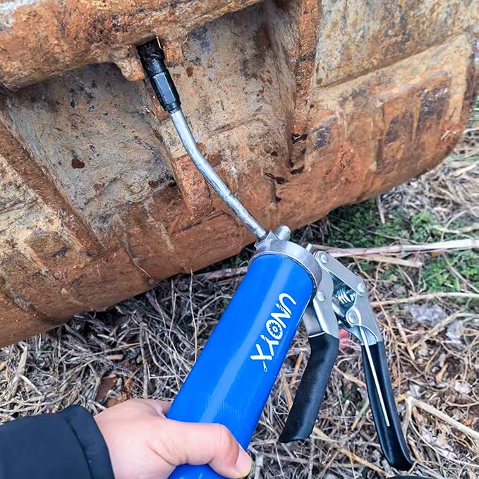- Ergonomic Pistol Grip - The pistol grip design with 12 inches flex hose of this grease gun provides easy use in tight and confined spaces. Purchase with confidence and enjoy the easy grease-filling experience provided by this grease gun kit