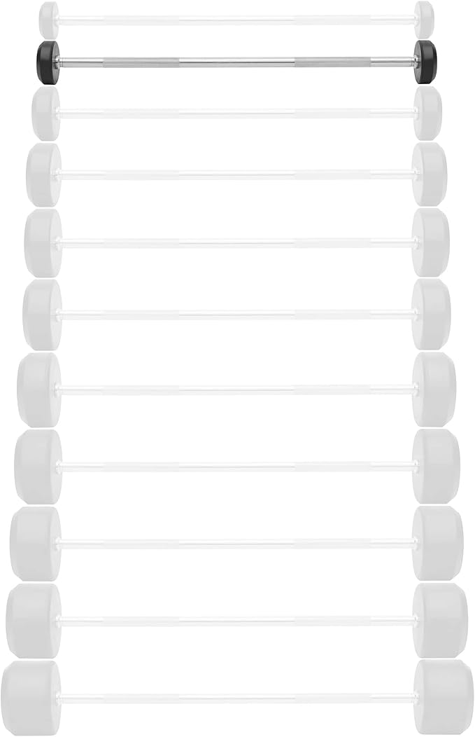 - 20 LB Weight Capacity: This fixed weight straight barbell has a total length of 41” with a 36.5” long steel bar with a 1.1” diameter. The rubber weighted ends are each 4.5” in diameter and 1.75” thick.