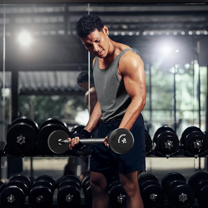 Philosophy Gym Rubber Fixed Barbell, Pre-Loaded Weight Straight Bar for Strength Training & Weightlifting