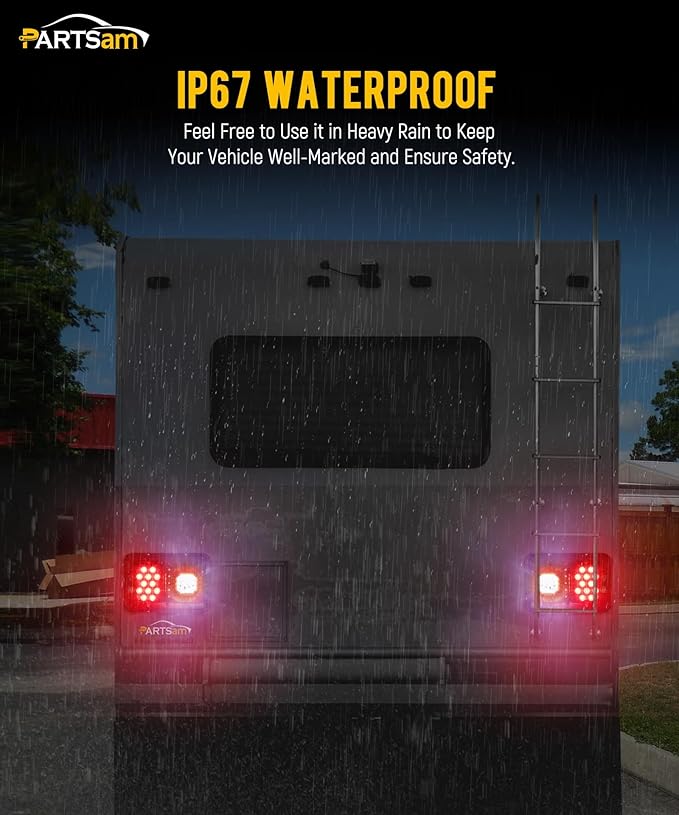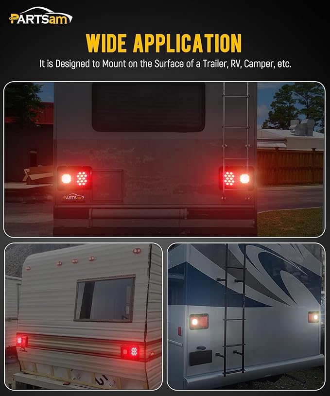 Partsam 2Pcs Double Led Trailer Tail Lights with Horizontal Mount Dual Stop Turn Tail Backup Reverse Lights 33 LED, Surface Mount RV Double Led Taillights, RV Double Led Tail Lights, Black Base