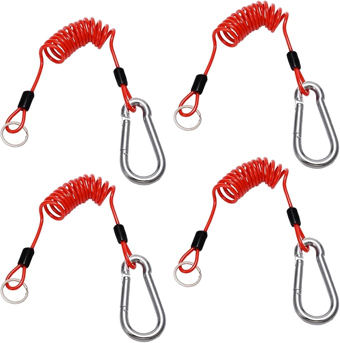 FizLig 4ft Breakaway Trailer Cable 4 Pack - Coiled Spring Wire, Emergency Brake Safety Cable for RV Camper 5th Wheel Trailer Towing Accessories