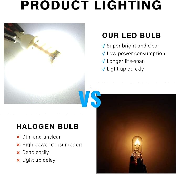 - 【ADVANTAGE】(Set of 20 bulbs)42-pieces extremely bright 3014 LED chips per bulb. Unique 360 degree lighting design to enhance brightness, 300% brighter than original halogen bulb, longer life span & low power consumption.