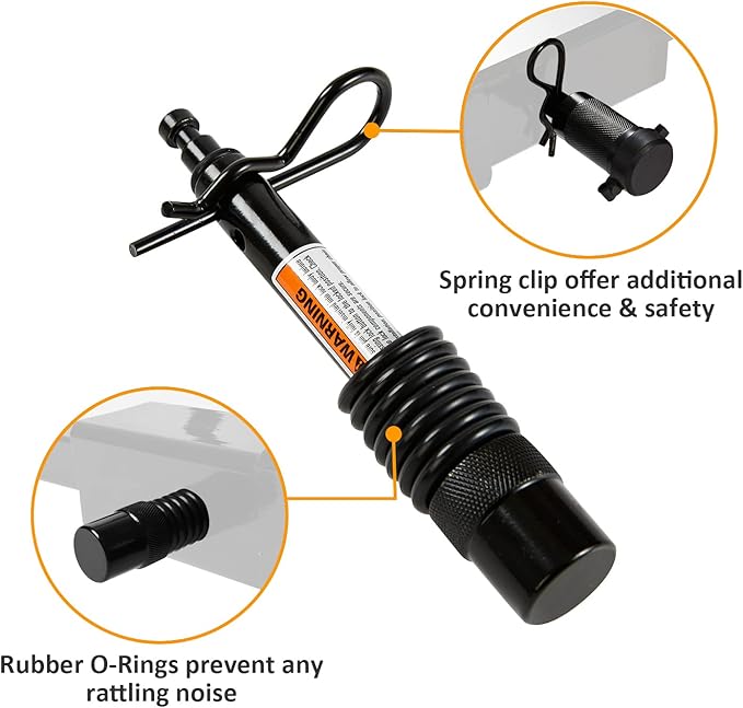 - 【PREVENT RATTLING NOISE】The hitch pin lock comes with 24 rubber O-rings of 3 different kinds which are suitable for locking pins of three different diameters (8 for 1/2-inch lock pins, 8 for 5/8-inch lock pins and 8 for 3/4-inch lock pins). The rings of trailer hitch pin help to provide a perfect fit and prevent any rattling noise.