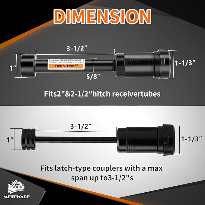 - UNIVERSAL APPLICATION - The trailer hitch lock is designed with 5/8" diameter and 3-1/2” long to make it works well with class III IV hitches, big towing vehicle, truck, 2"& 2-1/2" hitch receiver; 1/4" Dia trailer tongue lock fits latch-type couplers with a max span up to 3-1/2 inch. (Please confirm your required size or email us for more suggestion before having the order).