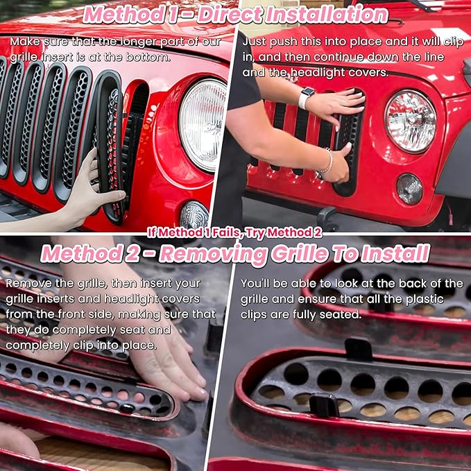 - Great Compatibility — Perfectly fit for Jeep Wrangler JK JKU 2007 2008 2009 2010 2011 2012 2013 2014 2015 2016 2017 2018 both 2-Door and 4-Door. Will Not fit any model that has factory grill inserts. (NOTE: Does Not fit for Sahara 2016-2018 only, Sahara X, Rubicon X, Polar Edition, Dragon Edition, Altitude Edition 2015-2018 only, Back Country Edition, 75th Anniversary Edition)