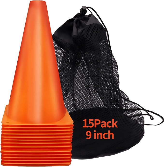 Cones Sports 9 Inch, 15 Pack Training Cones for Soccer Practice, Agility Field Cone Set for Drills Football Basketball, Plastic Cones for Outdoor Indoor Games