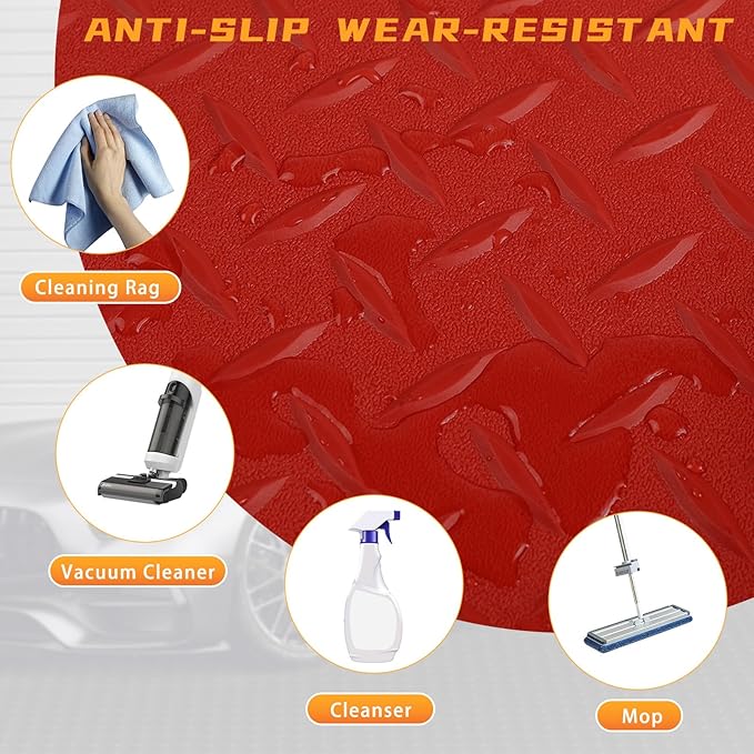 - ✅【Anti-Slip Safety】The diamond plate surface of this rubber garage mat ensures superior traction, making it ideal garage mats for floor under car