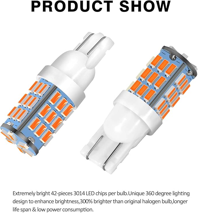 - 【ADVANTAGE】(Set of 20 bulbs)42-pieces extremely bright 3014 LED chips per bulb. Unique 360 degree lighting design to enhance brightness, 300% brighter than original halogen bulb, longer life span & low power consumption.