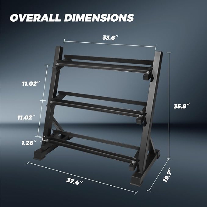 - Sets Included: This package contains a pair of 5LB, 10LB, 15LB, 20LB, 25LB, 30LB, 35LB, 40LB, 45LB Dumbbells and 1 X 3-Tier Rack. Designed to store most sizes of dumbbells, the RITFIT Dumbbell Rack is ideal for your home gym setup to keep your training space organized.