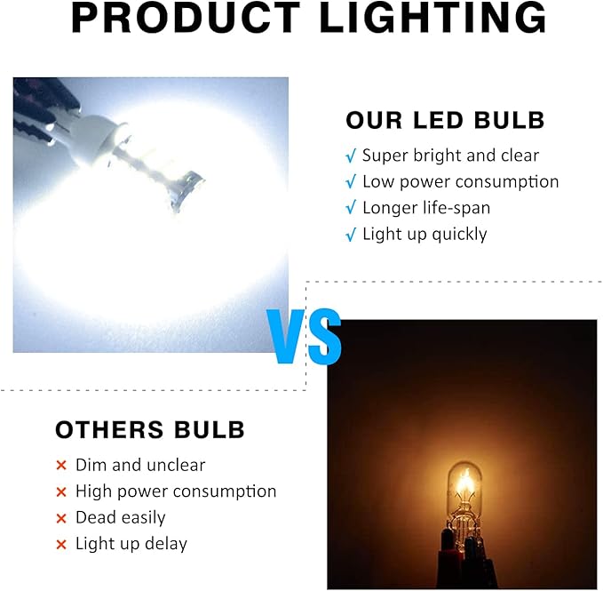 - 【ADVANTAGE】(Set of 20 bulbs)42-pieces cool bright 3014 LED chips per bulb. Unique 360 degree lighting design to enhance brightness, 300% brighter than original halogen bulb, longer life span & low power consumption.
