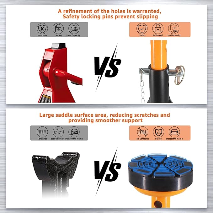 - These jack stands are perfect for modern low ground clearance cars, catering to a variety of vehicles such as small cars, SUVs, light-duty trucks, jeeps, ATVs, UTVs, and more.