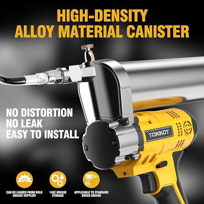 - [High-Density Grease Gun Tube]: The explosion-proof canister is built with high-density alloy material, which is not easy to deform and effectively prevents leakage. This TOKKOT grease gun supports both bulk and cartridge loading with cold-drawn steel tubing.14 oz (400 cc) capacity.
