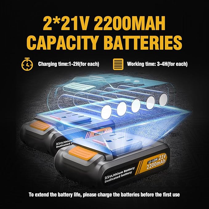 - [Long Battery Life]:Come with two 21V 2000mAh batteries and an efficient charger for uninterrupted use. Quick 1-2 hour charge and fully charged batteries can grease up to 10 tubes, ensuring continuous use even in remote job sites. Compatible with Ma-kita batteries,Share Ma-kita batteries across tools or borrow from teammates in a pinch and without sacrificing performance