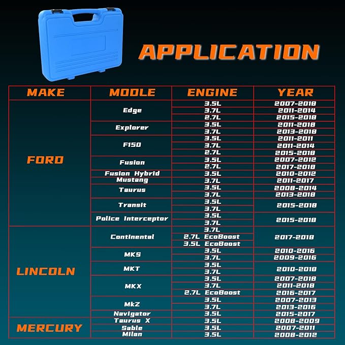 - This tool is designed specifically for Ford V6 3.5L and 3.7L Cyclone engines, making it compatible with a wide range of models, including Ford Edge, Explorer, F-150, Flex, Fusion, Fusion Hybrid, Mustang, Taurus; Lincoln MKS, MKT, MKX, MKZ, Navigator; and Mercury Milan, Sable, and Taurus X. It replaces part numbers 303-1248, 303-1530, and RT11. (OTC 6682)