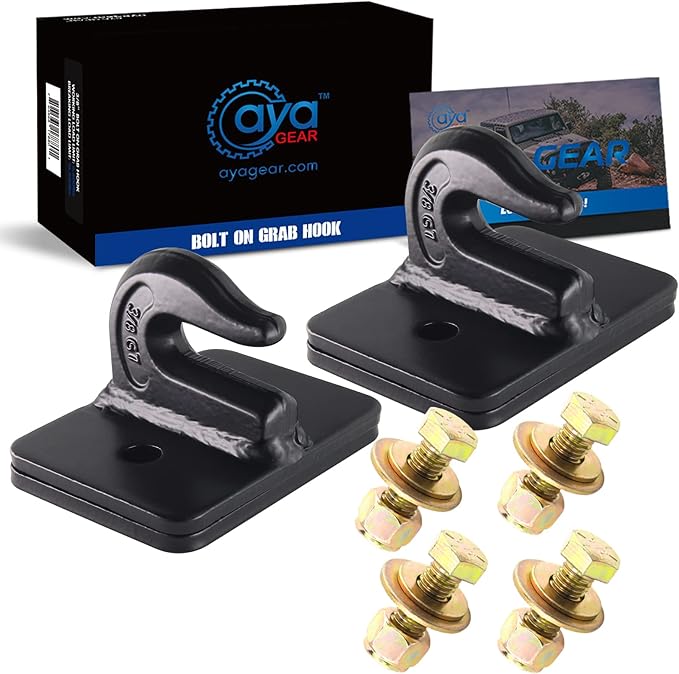 2 Pack 3/8-in Bolt On Grab Hook Mount with Backer Plate Grab Hook Grade 70 Forged Steel Tow Hook Work Well for Loader, Tractor Bucket, RV, UTV,Truck (Black)