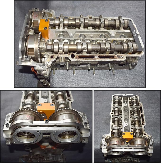 - Comes with a portable case for easy storage and transport. The engine camshaft alignment tool set includes a crankshaft locking pin, camshaft setting plate, two camshaft sensor setting tools, a camshaft sprocket holding tool, two chain tensioner locking pins, and a pair of gloves.