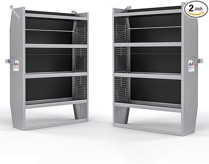 AA Products SH-6004(2) Steel Mid/High Roof Van Shelving Storage System Fits Transit, NV, Promaster and Sprinter, Set of 2 Van Shelving Units, 42''W x 60''H x 13''D