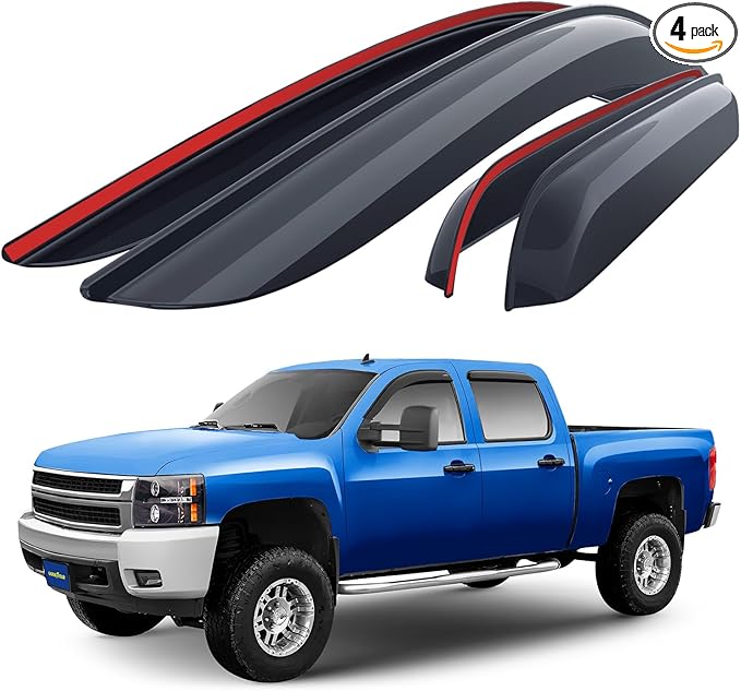 Goodyear Shatterproof Window Deflectors for Chevrolet (Chevy) Silverado 2007-2013 1500 Crew Cab, Tape-on Rain Guards, Window Visors, Vent Deflector Visor, Car Accessories, 4 pcs. - GY003100LP