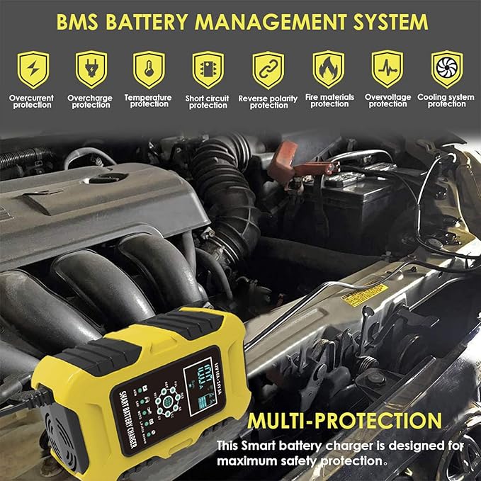 10-Amp Motorcycle & Car Battery Charger,12V and 24V Pulse Repair Charger,Trickle Battery Quick Charger & Maintainer for Truck ATV Lawn Mower Tractor SLA AGM Gel Wet Lead-Acid LiFePO4 Battery