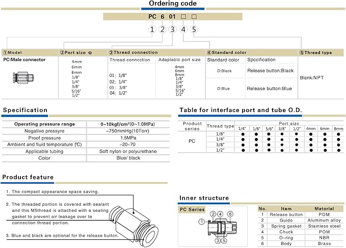 - 1/4 Air Fittings Working Pressure:0-1.0mpa | 0-150psi; Proof Pressure:3.0Mpa | 435psi; Negative Pressure:-100Kpa | -29.5 In Hg
