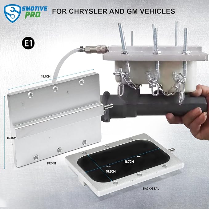 - 【MATERIAL】This brake bleeder adapter of master cylinder adapters inside the 10 is made of injection-molded nylon material, with good air tightness. The 43mm aluminum alloy adapter for Toyota and Lexus has been treated with surface chrome plating and blue aluminum oxidation, while the E1 adapter for Chrysler and GM is made entirely of aluminum alloy, making it strong, durable, and with excellent airtightness, so you can easily remove fluid and refill fluid into your entire brake system.