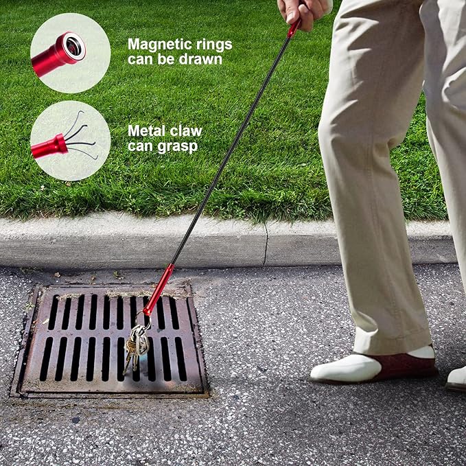 - 【Widely Use】: Our magnetic grabber can be used to pick up parts and tools dropped in the engine compartment during car repairs; Remove sewage sludge or hair in the household sink; Pick up earrings, necklaces, and rings that have fallen into the shower drain or sofa furniture gap.