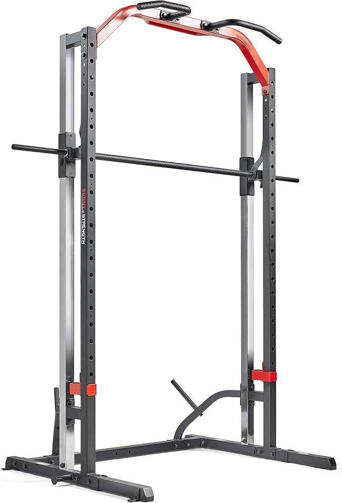 Sunny Health & Fitness Premium Smith Machine & Squat Cage Rack, Pull-Up Bar, Spotter Blocks for Weightlifting & Bench Press for Home Gym Strength Training
