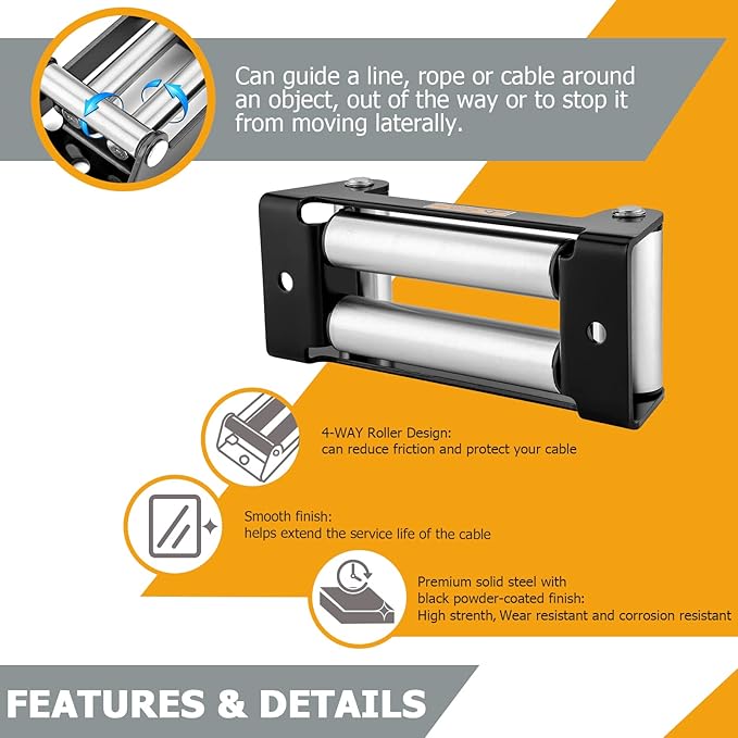 - Compatibility: This Roller Fairlead is compatible with 10" (254 mm) bolt centers for 8000-17500 lbs truck/suv winches