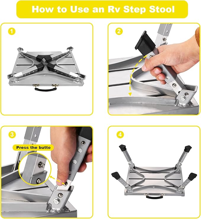 - MULTI-PURPOSE: Adjustable aluminum RV step stool is suitable for a variety of places. Not only can it be used in an RV, SUV, but it can also be used in the home, kitchen as a height platform.