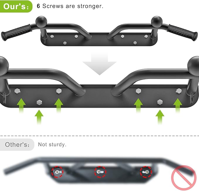 - Heavy Duty and Stable: Made of 1 3/10" durable steel tubing, this pull up bar can support up to 440 lbs and withstand years of use. The 6-hole design ensures more stability and safety than other wall mounted bars.