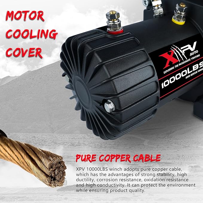 - Series-wound motor and planetary gear train: 4.5KW series wound pure copper winch motor features high magnetic induction melting point, high temperature resistance, strong power, safety and high efficiency.