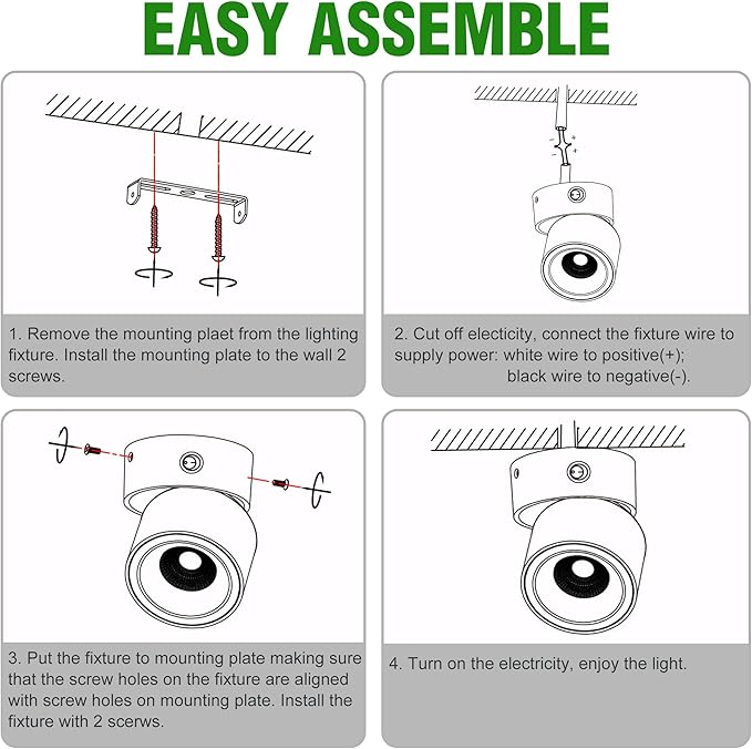 - 【✅ Easy Installation】 The wall swivel lamp size is 4-3/16" x 3-5/8". Surface mounting designed, Easy installation with only 2 Screws(Included). Wiring: black wire to positive and white wire to negative. You can install them as downlights or as wall lights according to your needs.