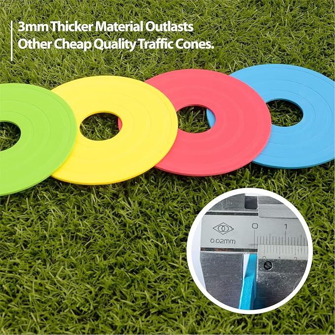 - AGILITY TRAINING: Each disc cone diameter is 19.5cm/7.7in.Holds up against the demands of training and made from durable flexible plastic so they don't lose shape from being stepped on unlike other low quality sets.