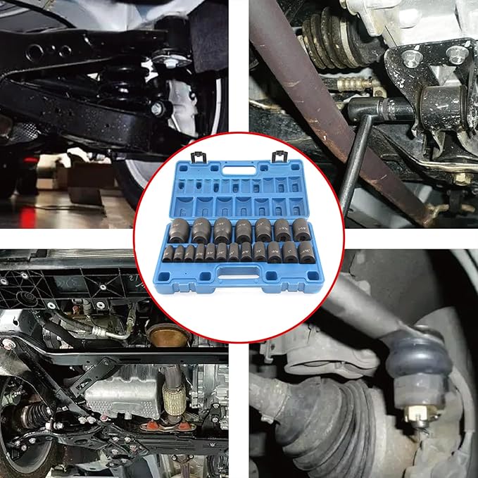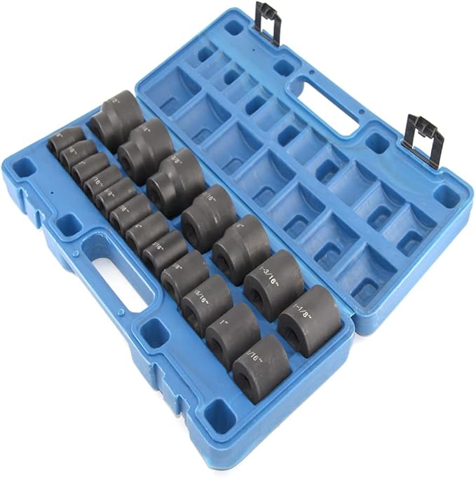 - 19 Sockets Included: This effort-saving 1/2'' drive impact standard/shallow socket set comes with 19 impact drive sockets: 3/8'', 7/16'', 1/2'', 9/16'', 5/8'', 11/16'', 3/4'', 13/16'', 7/8'', 15 / 16'', 1'', 1-1 / 16'', 1-1 / 8'', 1-3 / 16'', 1-1 / 4'', 1-5 / 16'', 1-3 / 8'', 1 -7/16'', 1-1 / 2''.