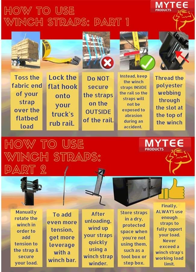 Mytee Products (300 Pack) Kinedyne Pallet Winch Straps 4" x 30' Gold Heavy Duty Tie Down w/Flat Hooks WLL# 5400 lbs | 4 Inch Cargo Control for Flatbed Truck Utility Trailer
