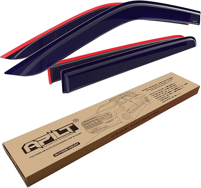 - 【FULL-SIZE WINDOW DEFLECTORS】APILT thicker window deflectors adopts the original car scanning mold opening technology, which fits perfectly with the body. Compared with installing the deflectors on the edge of the window, the installation of the window deflectors on the edge of the APILT door is more like the original car accessories, which can improve the appearance of the model. Quick installation without drilling.