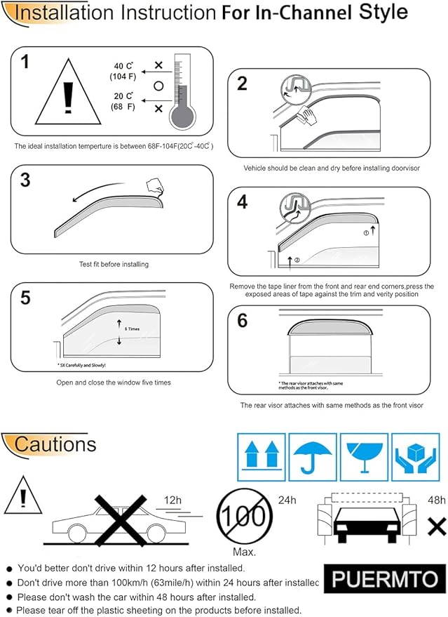 - EASY INSTALLATION: Our Window Visors mounting with tape for extra-strong grip, no drilling is needed ,and no disturbed in the windows up and down.