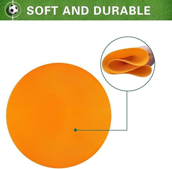 - 【NON-SLIP DOTS ON THE BACK】They resist sliding across gym floors or pavement when stepped on or run over during activities, making them safe for use during fast-paced games and drills or for social distancing.