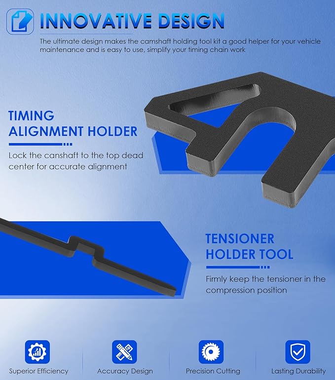 - 【SATISFACTION GUARANTEE】: We provide friendly 1-year’s warranty support and easy-to-reach Customer Service to make sure your investment! If you hava any quesyions about this Camshaft Holding Tool Kit, please contact us without hesitate.