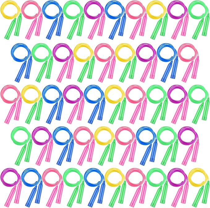 - Package includes: you will receive 48 packs of colorful kids plastic jump ropes in various colors, sufficient for you to play with your friends and purchase as party favors, offering you and your family more giggles and unforgettable memories