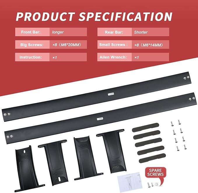 - 【Easy to Install on Vehicle】 Come with necessary installation tools, and easy to assemble and disassemble in a few minutes. Labeled front and back so no guessing on which one goes where. By loosing and sliding the base to accommodate to your vehicle side rail.