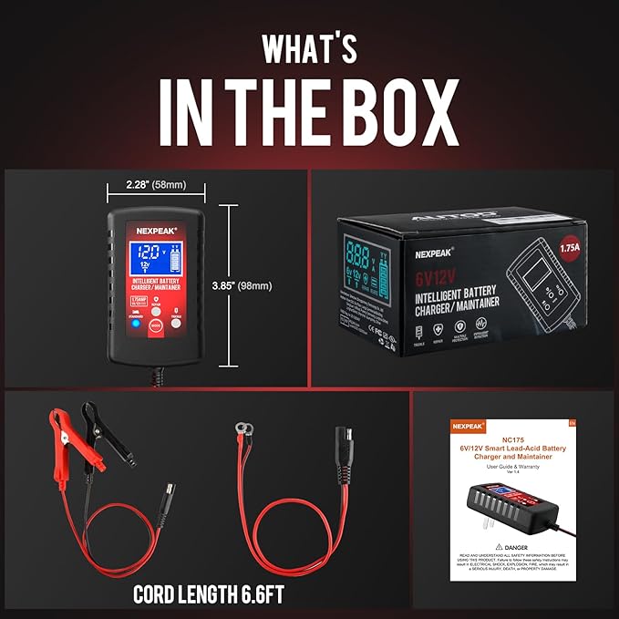 - 【What You Get】 2 Year 100% SATISFACTION SERVICE. Extra long 6.6ft SAE standard cord with detachable alligator and ring connectors. Press and hold the MODE button for 5 seconds, and the charger will be forced to switch to 12V charging mode. If you are not pleased with the product, please contact NEXPEAK directly for hassle-free return and refund.
