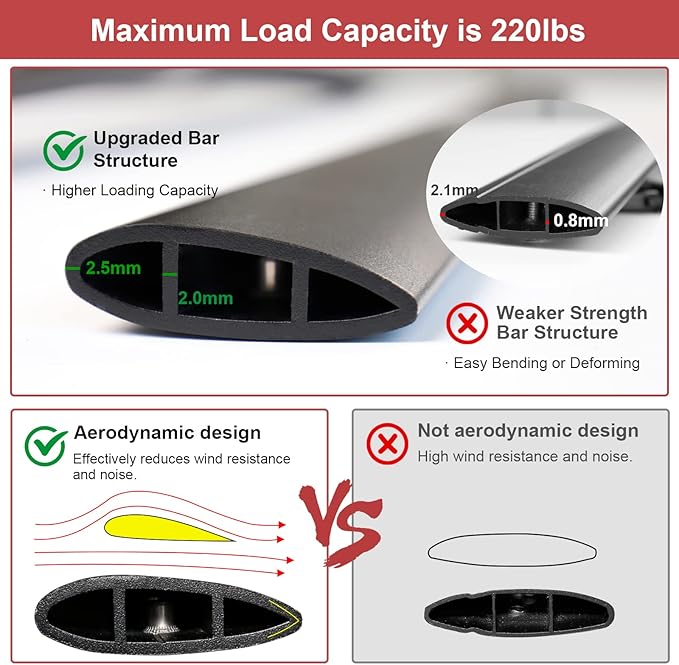 - 【Less Wind Noise Design】The aerodynamic design effectively reduces wind resistance and noise, minimizing noise emission at high speeds and allowing you have a quiet driving environment.