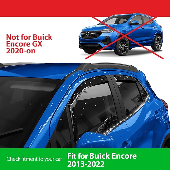 - Attention! Vent deflector custom fits only for Buick Encore 2013-2022 (does not fit for Buick Encore GX 2020-2026).