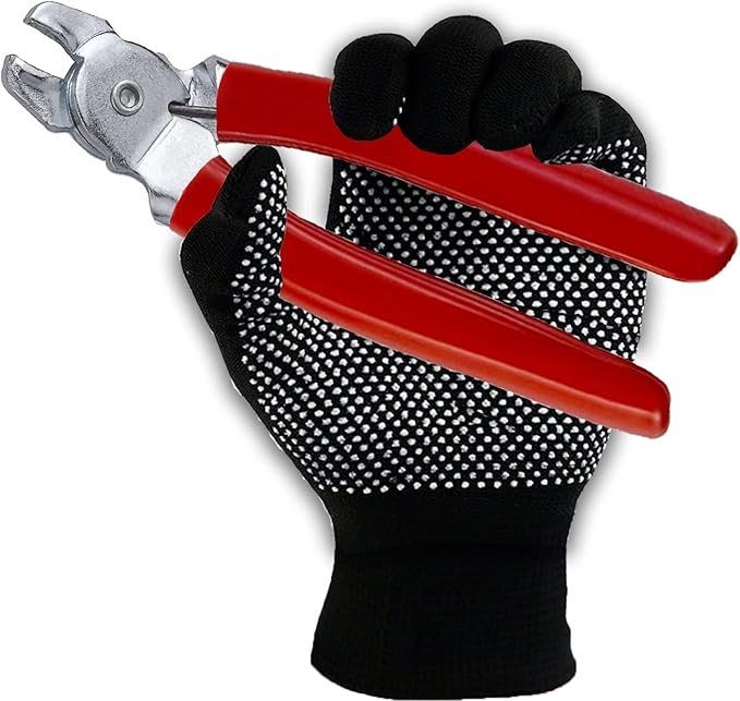 - 【Package information】In this kit, You will get A pair of Anti-Slip Gloves. 120Pcs 1" Hog Rings; 120Pcs 3/4" Hog Rings; 120Pcs 1/2" Hog Rings; 120Pcs 3/8" Hog Rings and 1Pcs Hog Ring Pliers Angled