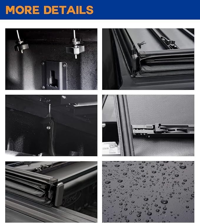 - 【Installation】:Easy No-Drilling Installation---Easy to assemble with provided instruction and hardware. Easy to use clamping system secures the cover to your truck, so it won't detach when you're driving.Easy to Clean and Low Maintain,Simply rinse clean with water and let air dry.